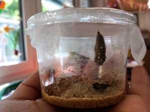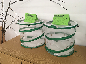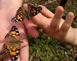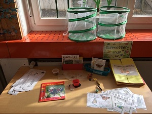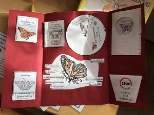 Zu Beginn des Schuljahres konnten die beiden 2. Klassen an einem Schmetterlingsprojekt teilhaben. Jede Klasse bekam 15 kleine Raupen in Aufzuchtbechern und durfte sie über mehrere Wochen beim Wachsen und Verpuppen beobachten, bis die Distelfalter schließlich schlüpften. Die Fortschritte wurden dokumentiert und in einem Lapbook wurde alles Wissenswerte über Schmetterlinge festgehalten. Der Höhepunkt war letztendlich das Freilassen unserer Distelfalter am Wandertag.
