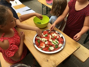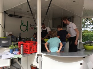 Schon öfter hat der Kochbus der Organisation "Rheinland-Pfalz isst besser" unsere Schule besucht und immer wieder war es ein Vergnügen zu sehen, wie die Kinder ausgewählte Gerichte selbst zubereitet und mit Genuss gegessen haben. Im Zusammenhang mit dem Thema "Gesunde Ernährung" erfahren sie so nicht nur, wie regionale Obst- und Gemüsesorten zubereitet werden, sondern auch viel zu ökologischer Tierhaltung und biologischem Anbau. Auch Arbeitsteilung und Gemeinschaft stehen hier durch das gemeinsame Zubereiten und Essen der Mahlzeiten immer an erster Stelle. Ein rundum gelungenes Projekt!