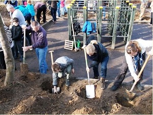 Auch bei der Gestaltung des Schulhofs half er fleißig mit und spendierte Spielgeräte und Pflanzen für die Grünanlagen.